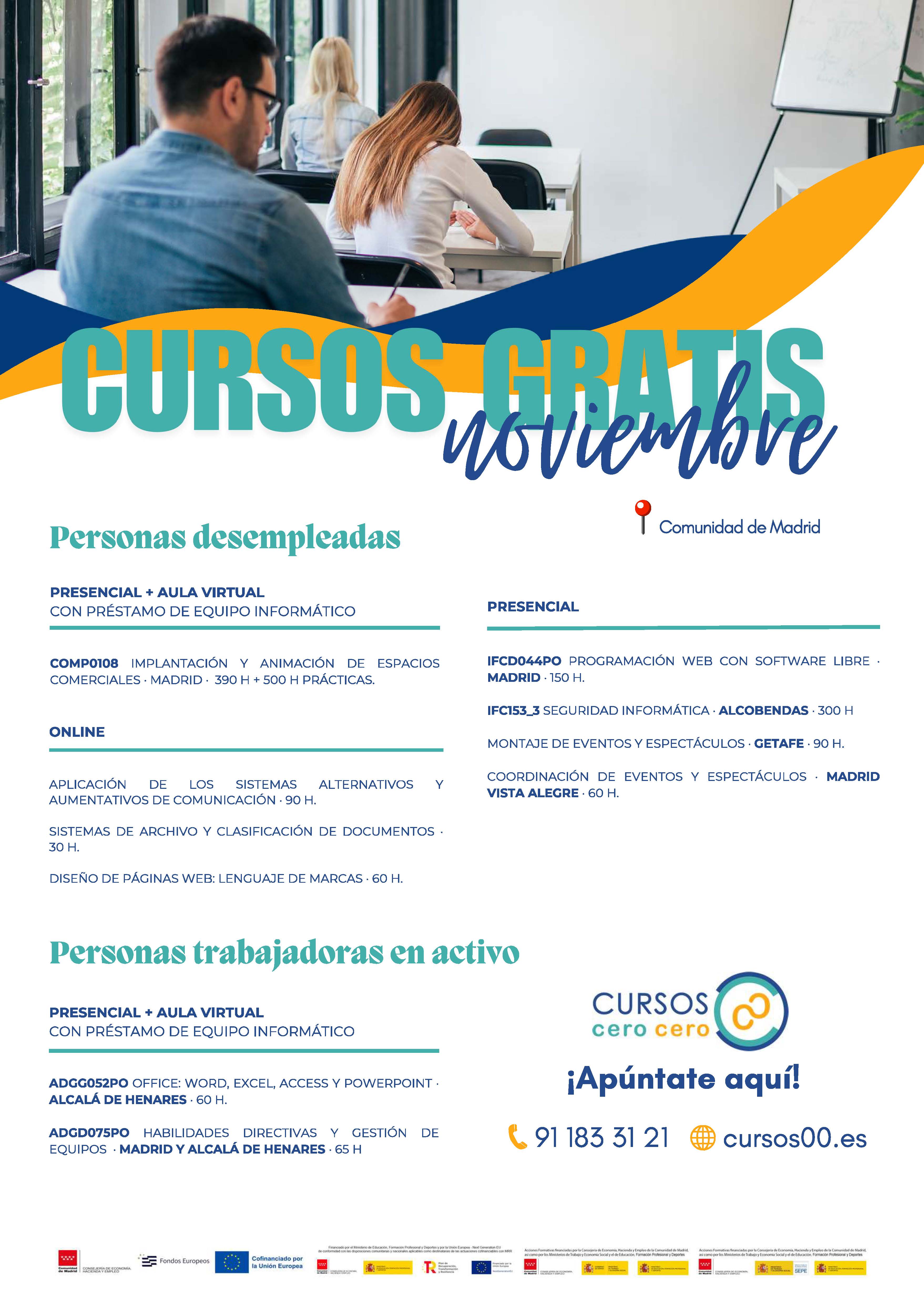 informativo con la oferta de cursos gratuitos para el mes de noviembre.